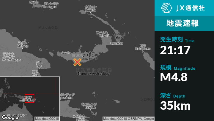 | 震源地 | パプアニューギニアのKandrianから東北東33kmの地点 |