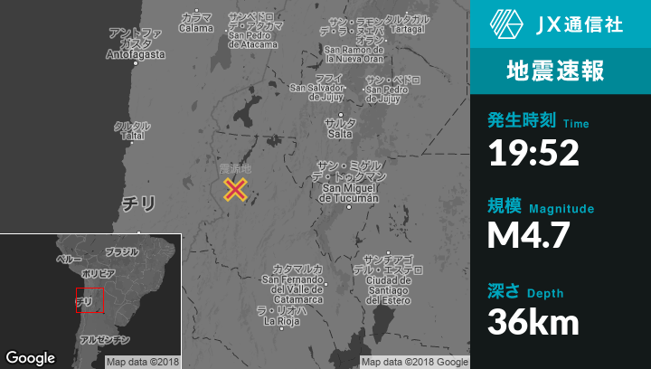 | 震源地 | アルゼンチンのAntofagasta de la Sierraから西南西64kmの地点 |