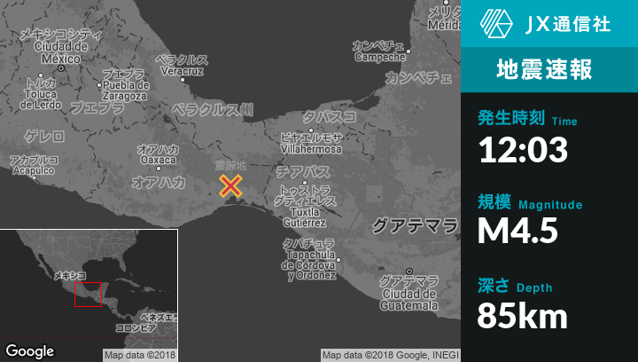 | 震源地 | メキシコのMatias Romeroから南東15kmの地点 |