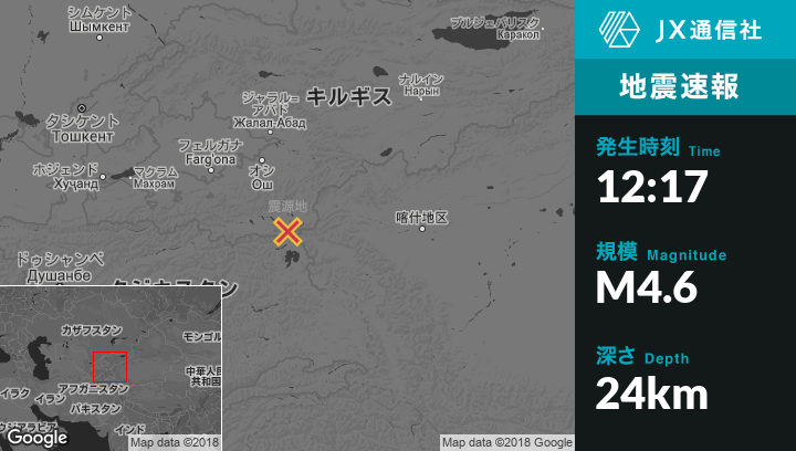 5月06日 12:17頃、キルギスのSary-Tashから南南東23kmの地点でM4.6の地震がありました。