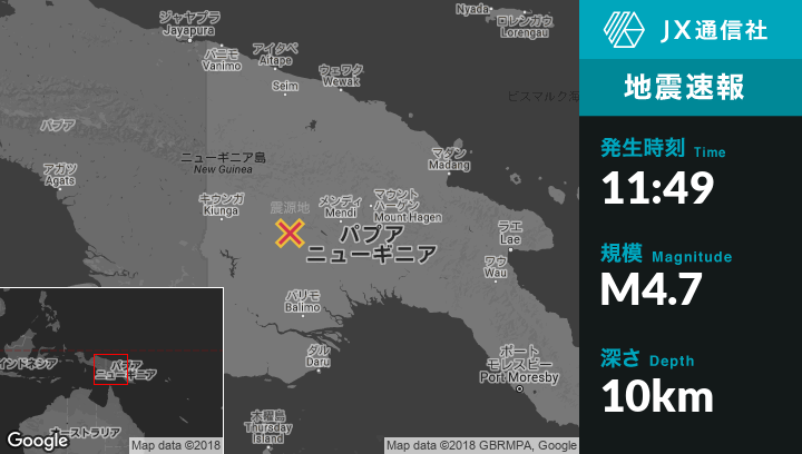 | 震源地 | パプアニューギニアのPorgeraから南西108kmの地点 |