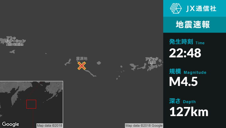 | 震源地 | アラスカのLittle Sitkin Islandから南西7kmの地点 |