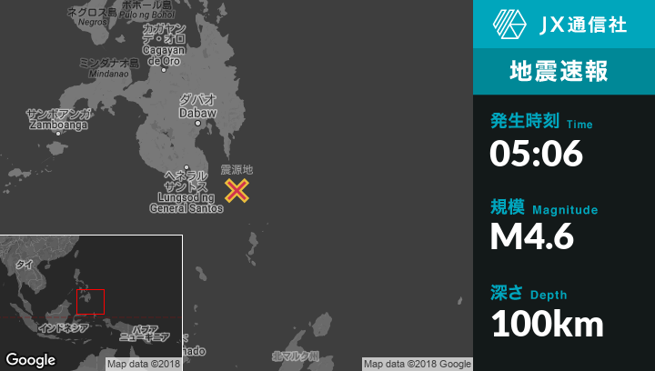| 震源地 | フィリピンのPondaguitanから南南東78kmの地点 |