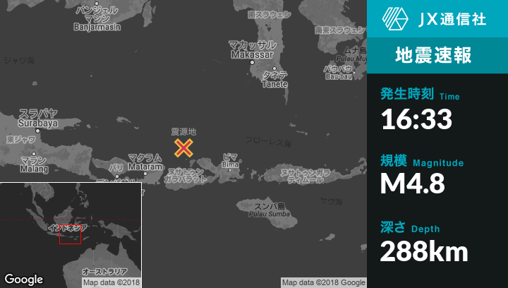 | 震源地 | インドネシアのLabuhankanangaから北西74kmの地点 |