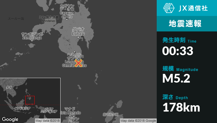 | 震源地 | フィリピンのSaranganiから北1kmの地点 |