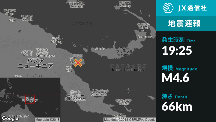 | 震源地 | パプアニューギニアのLaeから北東52kmの地点 |