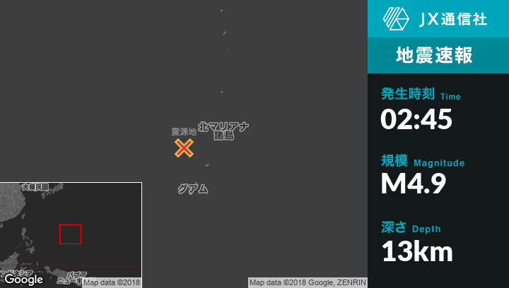| 震源地 | 北マリアナ諸島のRotaから北西103kmの地点 |