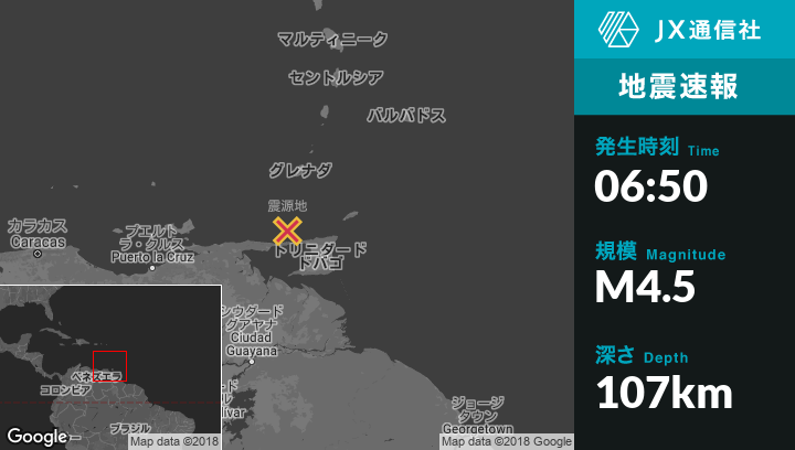 | 震源地 | トリニダード・トバゴのPetit Valleyから北西59kmの地点 |