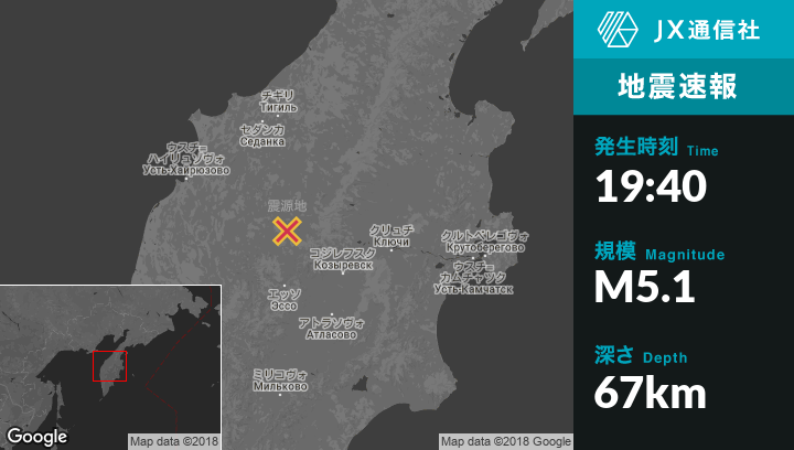 5月21日 19:40頃、ロシアのEssoから北73kmの地点でM5.1の地震がありました。