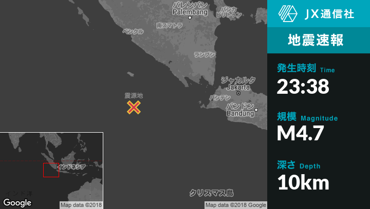 | 震源地 | インドネシアのBihaから南西236kmの地点 |