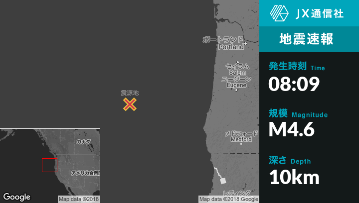 | 震源地 | オレゴンのBandonから西北西281kmの地点 |