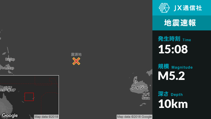 | 震源地 | フィジーのLautokaから西北西492kmの地点 |
