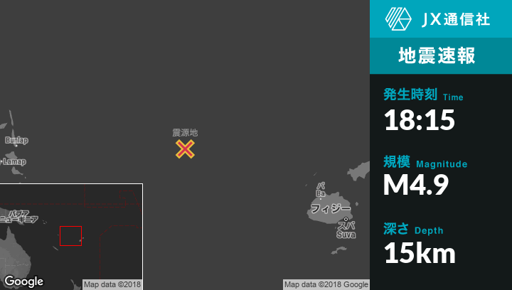 | 震源地 | フィジーのLautokaから西北西464kmの地点 |