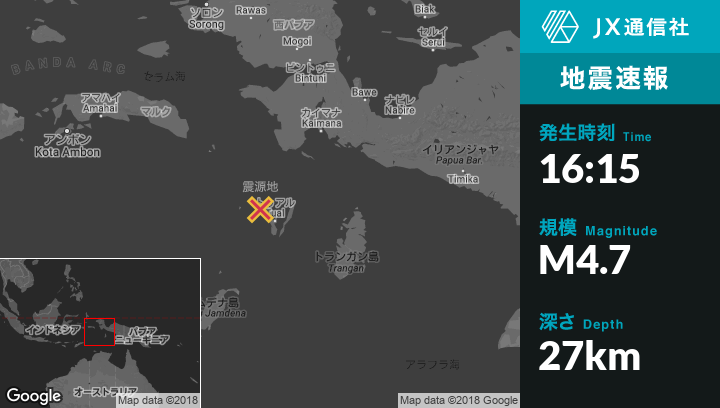 | 震源地 | インドネシアのTualから北西56kmの地点 |