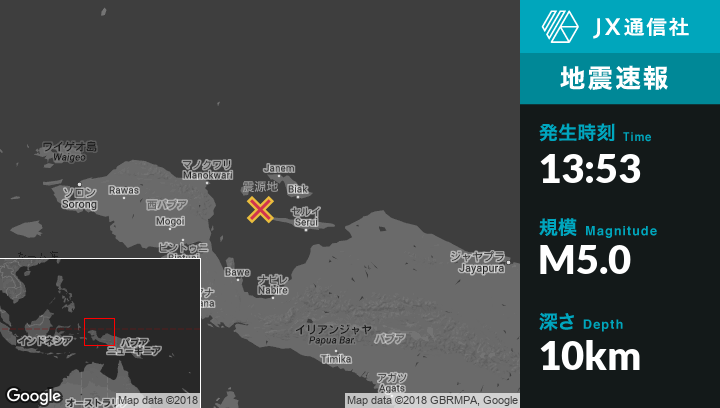 | 震源地 | インドネシアのManokwariから東南東135kmの地点 |