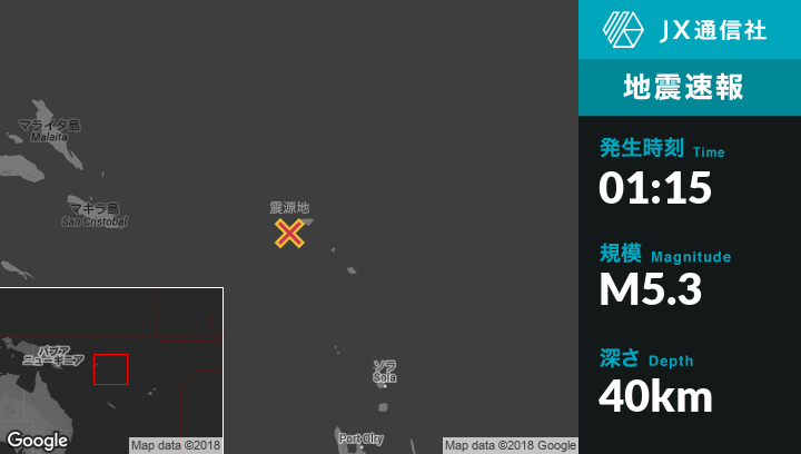 6月08日 01:15頃、ソロモン諸島のLataから西南西21kmの地点でM5.3の地震がありました。