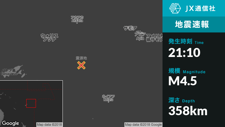 | 震源地 | トンガのHihifoから西229kmの地点 |
