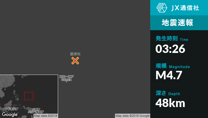 | 震源地 | ミクロネシアのRumungから北北東188kmの地点 |