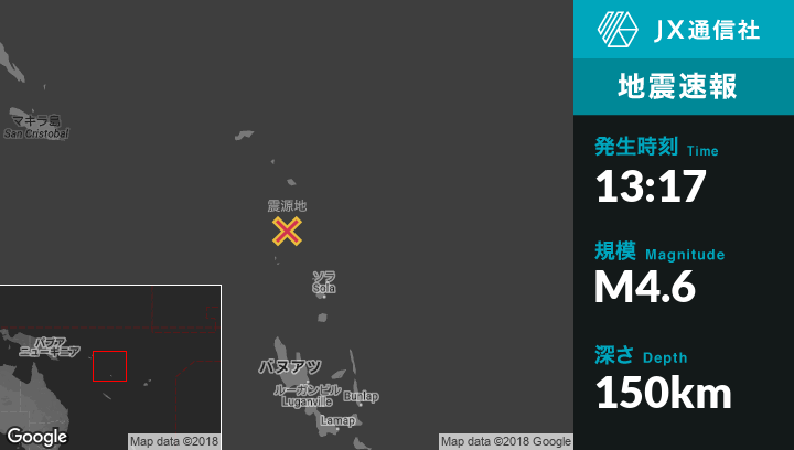| 震源地 | バヌアツのSolaから北北西174kmの地点 |