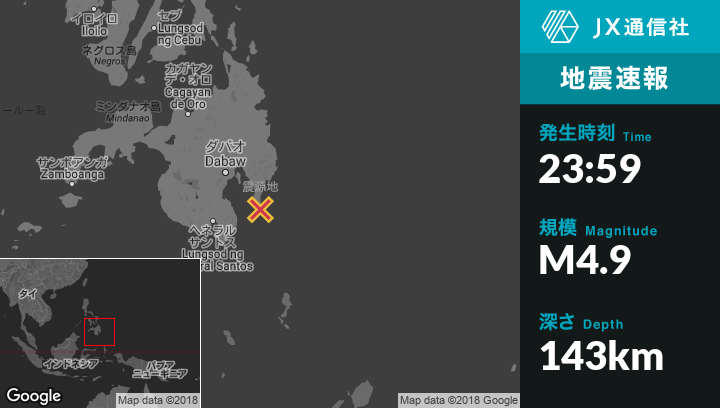 | 震源地 | フィリピンのNanganから東北東10kmの地点 |