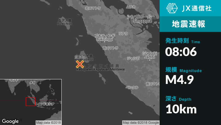 | 震源地 | インドネシアのMuara Siberutから西南西68kmの地点 |