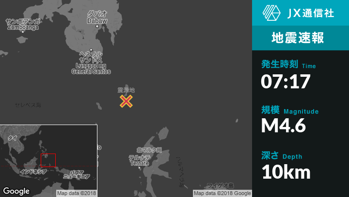 | 震源地 | フィリピンのSaranganiから南東219kmの地点 |