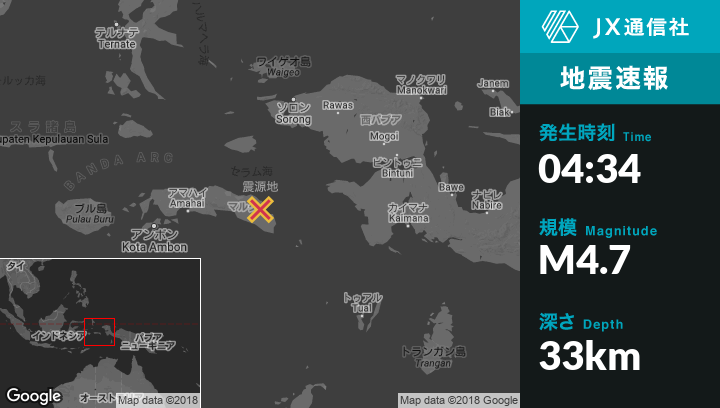 | 震源地 | インドネシアのAmahaiから東178kmの地点 |