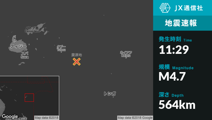 | 震源地 | フィジーのNdoi Islandから北北東231kmの地点 |
