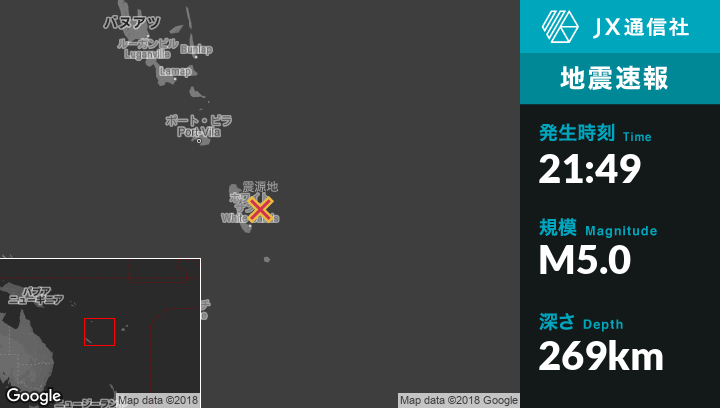 6月25日 21:49頃、バヌアツのIsangelから北東71kmの地点でM5.0の地震がありました。