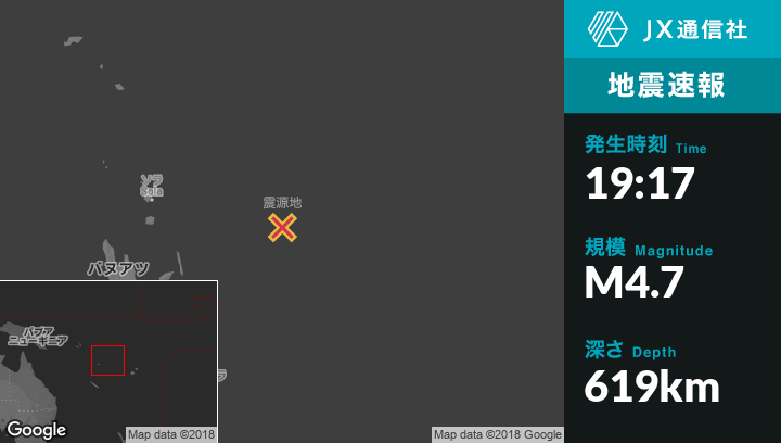 | 震源地 | バヌアツのSolaから東288kmの地点 |