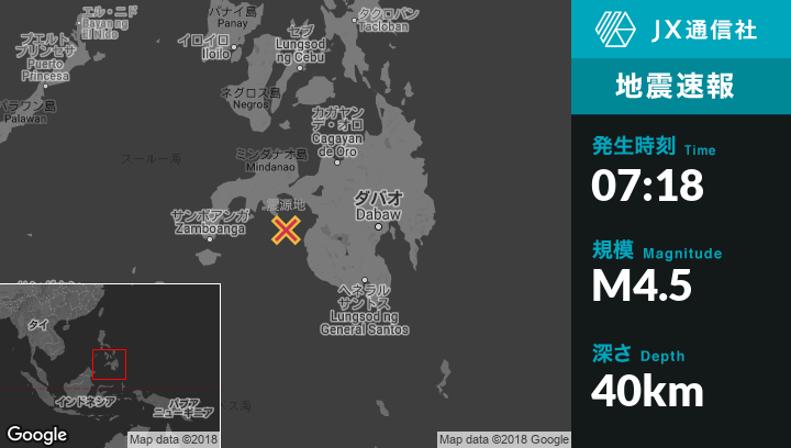 | 震源地 | フィリピンのMalimから南東29kmの地点 |