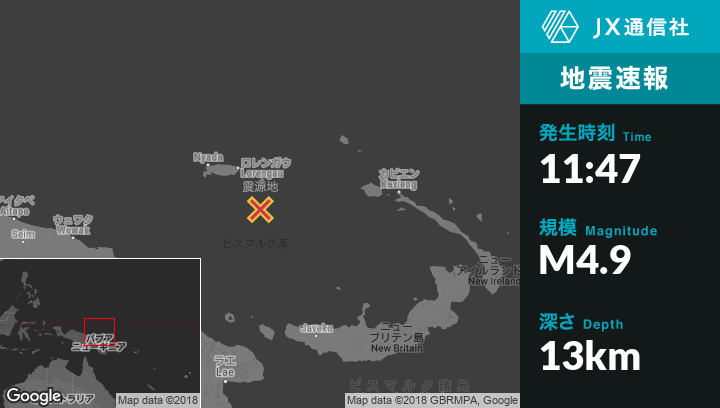 | 震源地 | パプアニューギニアのLorengauから南南東105kmの地点 |