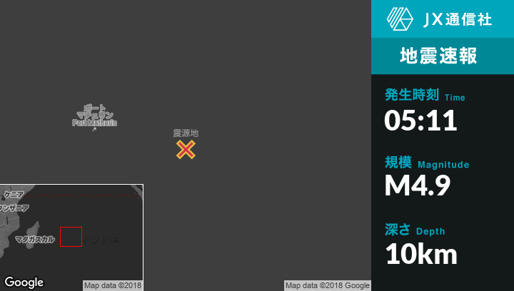 | 震源地 | モーリシャスのIle Rodriguesから東299kmの地点 |