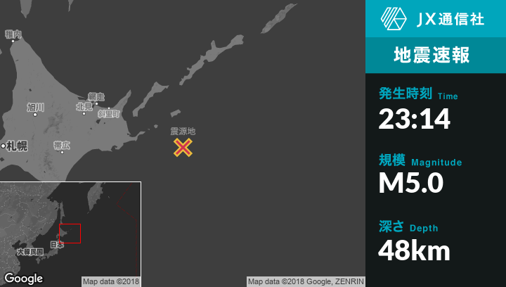 8月09日 23:14頃、ロシアのShikotanから南南東78kmの地点でM5.0の地震がありました。