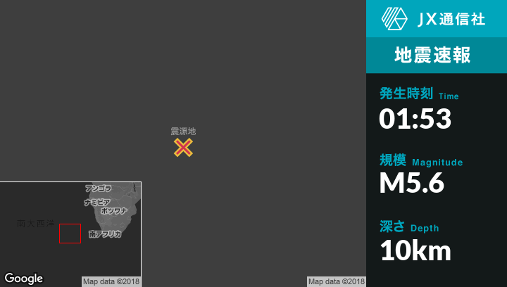 8月10日 01:53頃、セントヘレナのEdinburgh of the Seven Seasから東北東1407kmの地点でM5.6の地震がありました。