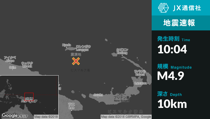 | 震源地 | パプアニューギニアのLorengauから南98kmの地点 |