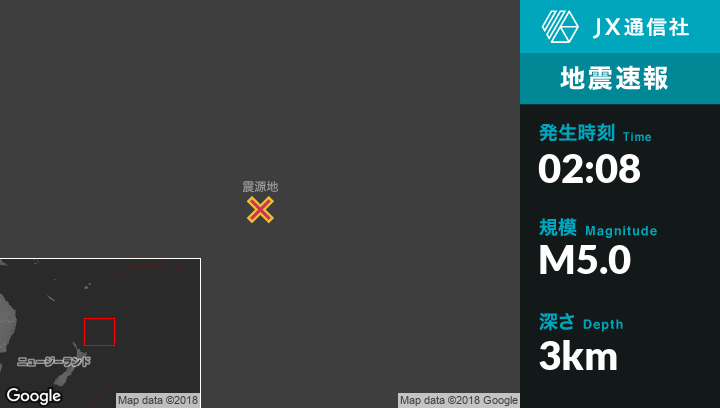 | 震源地 | ニュージーランドのL'Esperance Rockから東南東174kmの地点 |