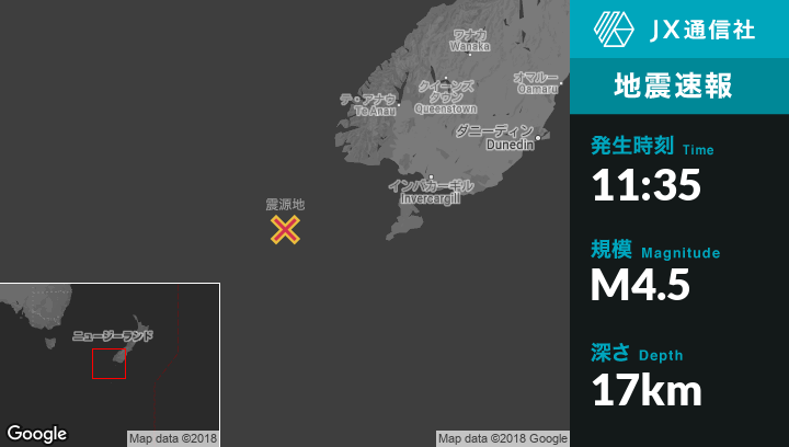 | 震源地 | ニュージーランドのRivertonから西南西213kmの地点 |