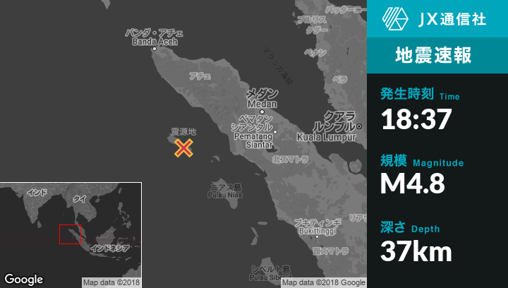 | 震源地 | インドネシアのSinabangから西北西20kmの地点 |