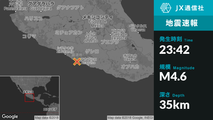 | 震源地 | メキシコのTecpan de Galeanaから南南東2kmの地点 |