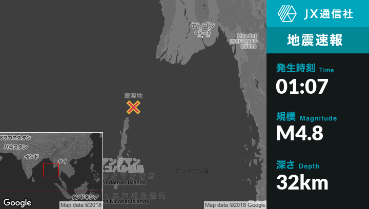 | 震源地 | インドのBamboo Flatから北北東268kmの地点 |