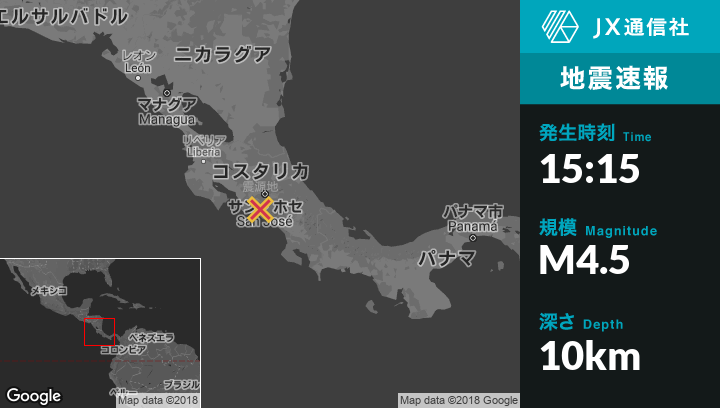 | 震源地 | コスタリカのTejarから南東4kmの地点 |