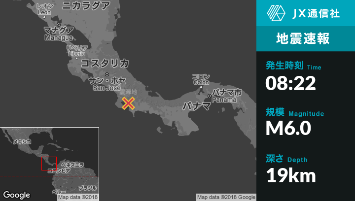 8月18日 08:22頃、コスタリカのGolfitoから北15kmの地点でM6.0の地震がありました。