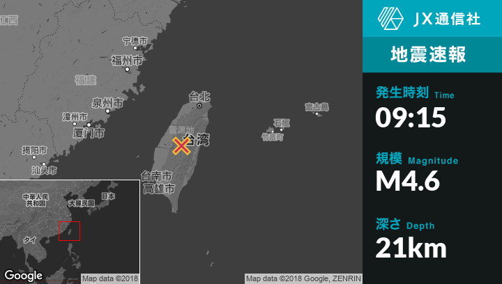 8月18日 09:15頃、台湾のBuliから東北東3kmの地点でM4.6の地震がありました。