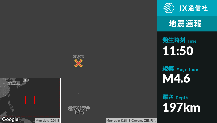 8月18日 11:50頃、北マリアナ諸島のAgrihanから南20kmの地点でM4.6の地震がありました。