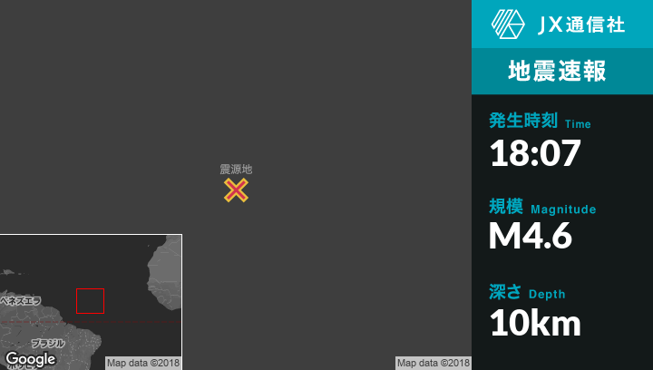 8月18日 18:07頃、ブラジルのAcarauから北1191kmの地点でM4.6の地震がありました。