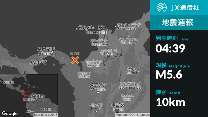 8月19日 04:39頃、コロンビアのAcandiから北35kmの地点でM5.6の地震がありました。