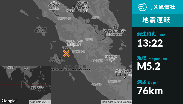 | 震源地 | インドネシアのPariamanから西南西47kmの地点 |