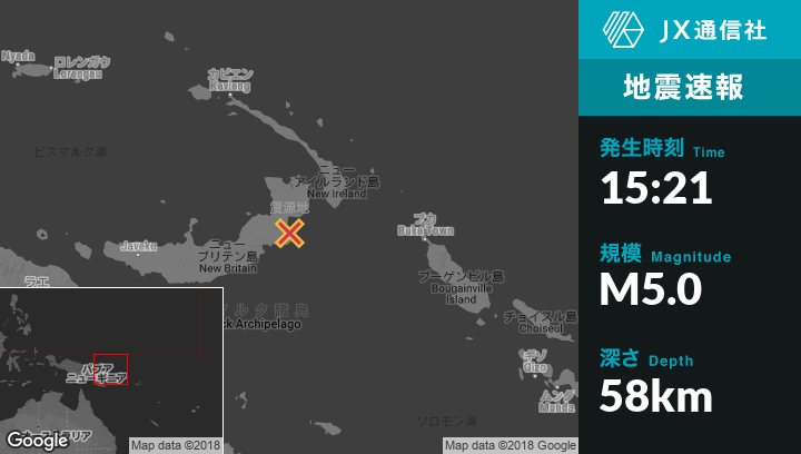 | 震源地 | パプアニューギニアのKokopoから南南西96kmの地点 |