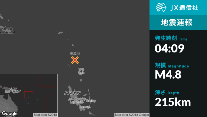 | 震源地 | バヌアツのSolaから北北西144kmの地点 |